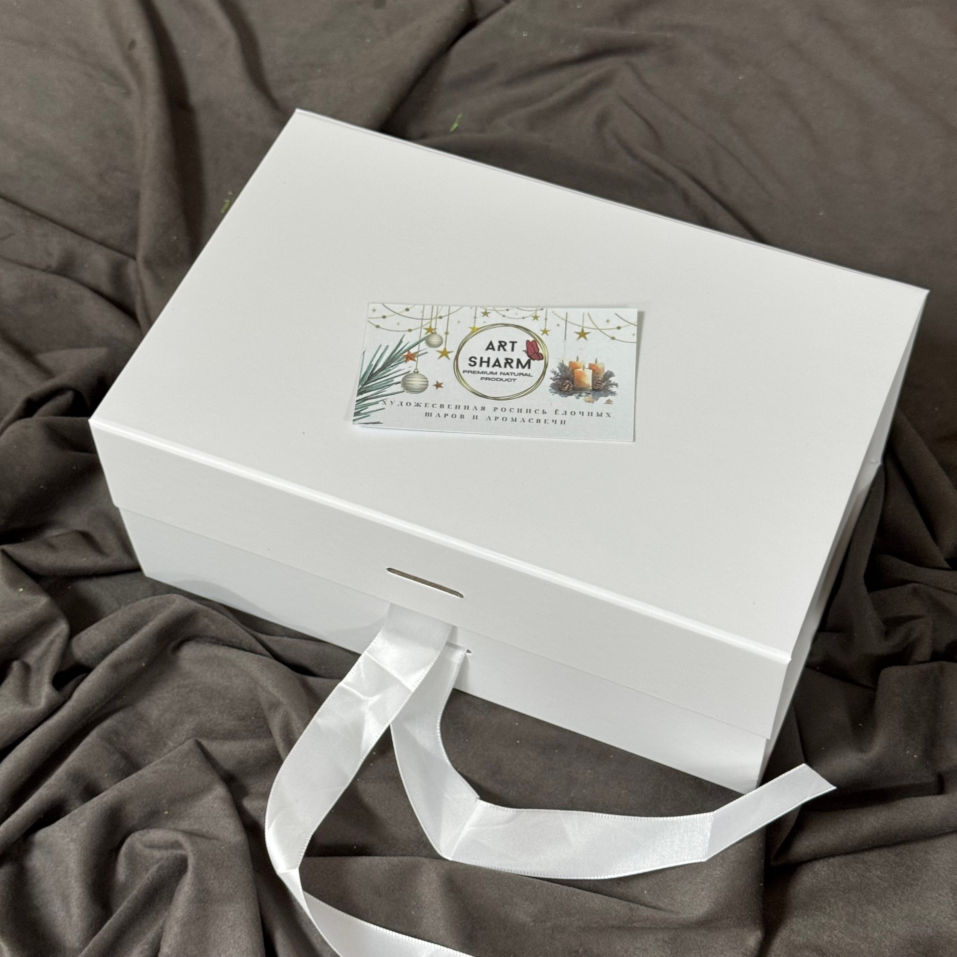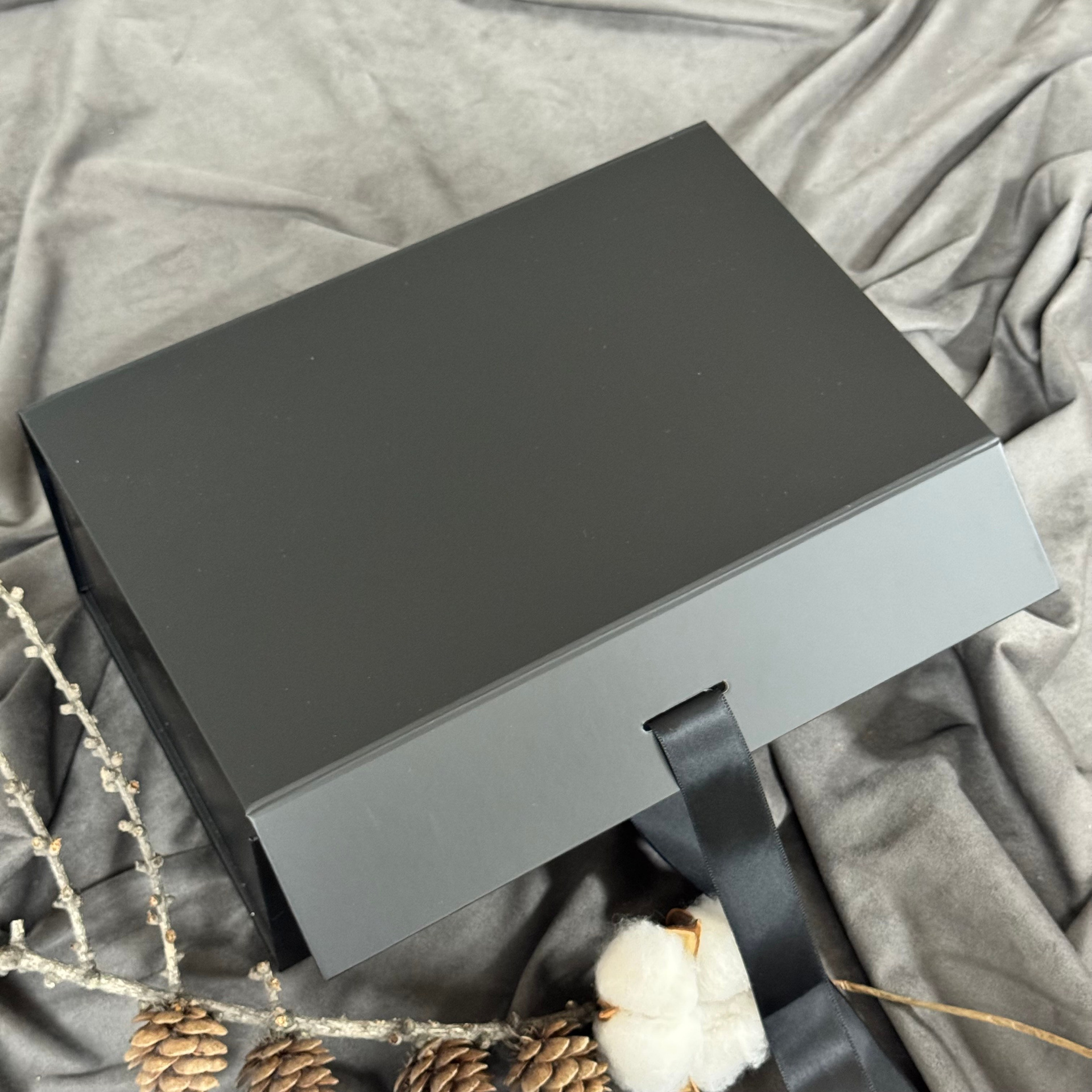 — подарочная коробочка с мягким наполнением и магнитным клапаном с лентой.